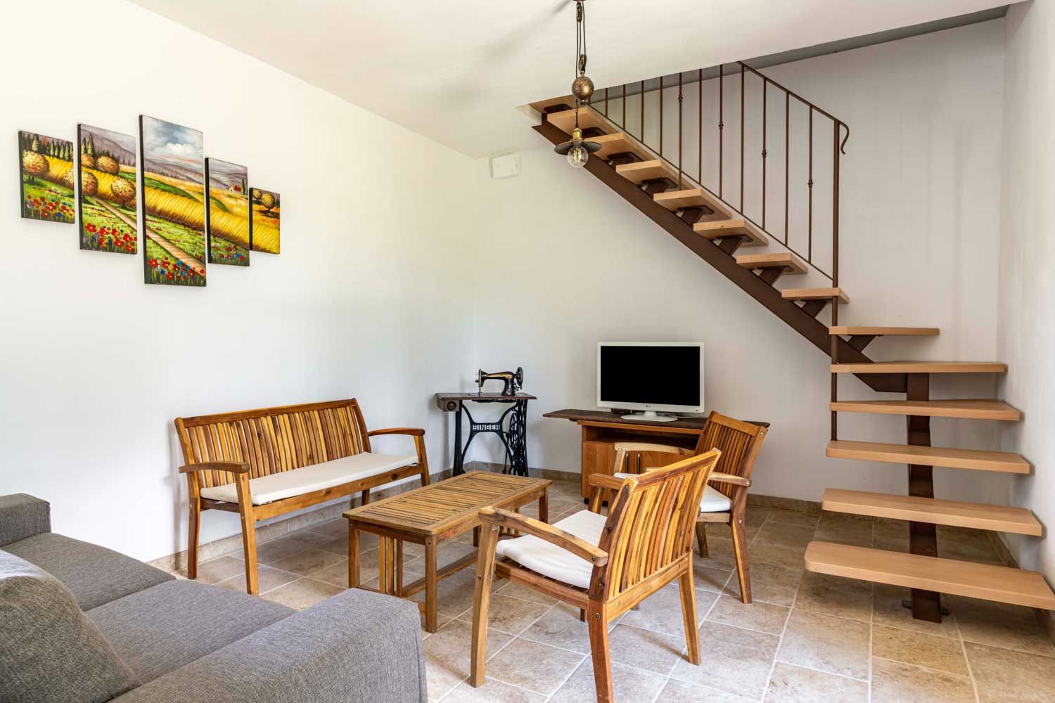 Scala interna molto comoda e facile che collega i due piani della casa colonica di 95 m².