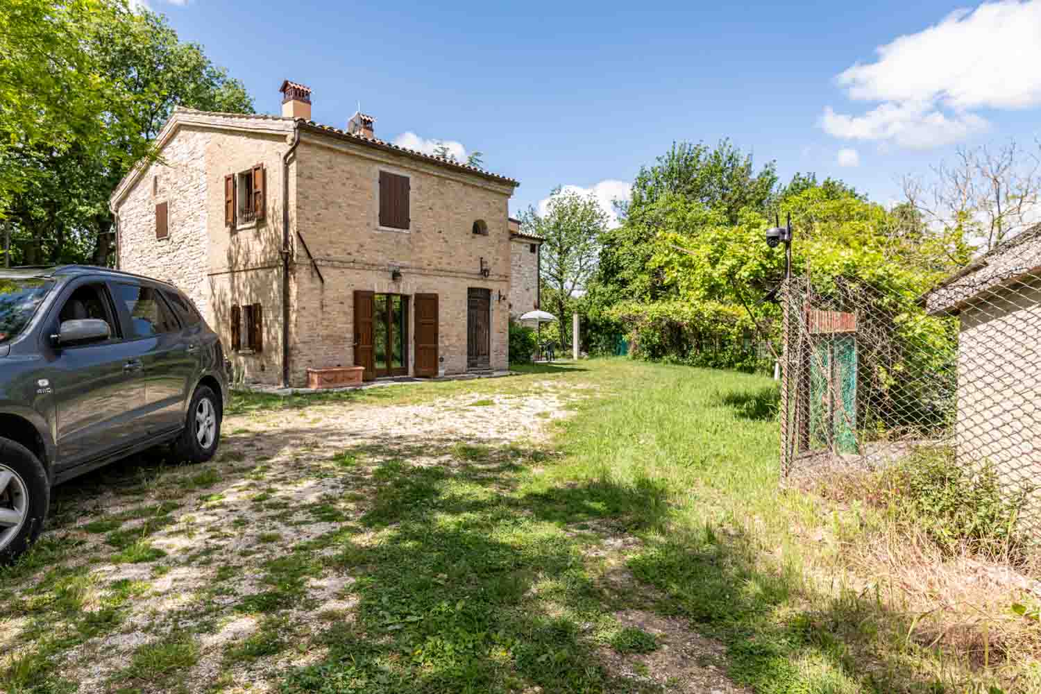 Circondato da terreno completamente esclusivo di circa 1.000 m² che abbraccia l'intera casa colonica, offrendo privacy totale e tranquillità.